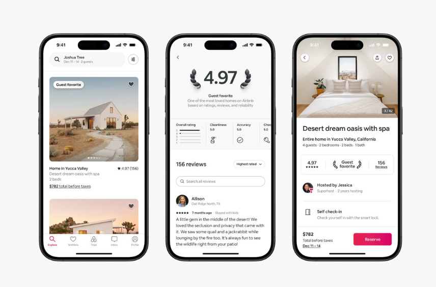 1. Airbnb: « Real-time search that actually works. Map + availability + pricing in one view. No guesswork. No dead ends. »