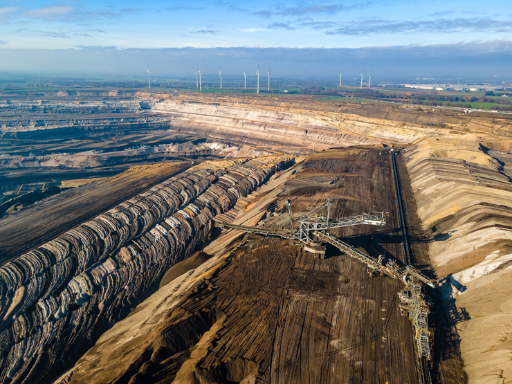 1. The Garzweiler open-cast mine is part of the large brown-coal (also referred to as lignite or soft coal) district in western North Rhine-Westphalia, Germany. The Garzweiler mine has been linked to extensive environmental and social harm, including greenhouse gas emissions, pollution, water management challenges, and the destruction of communities and ecosystems. Source: Envato Elements
