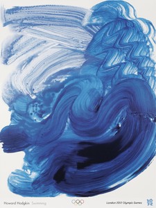 Howard Hodgkin’s poster for the 2012 London Summer Olympics, featuring Swimming (2011), offset-printed poster, 31 ½ × 23 ⅝ inches (80 × 60 cm), Olympic Museum Collections, Lausanne, Switzerland © The Estate of Howard Hodgkin. All rights reserved, DACS/Artimage 2024. Photo: International Olympic Committee
