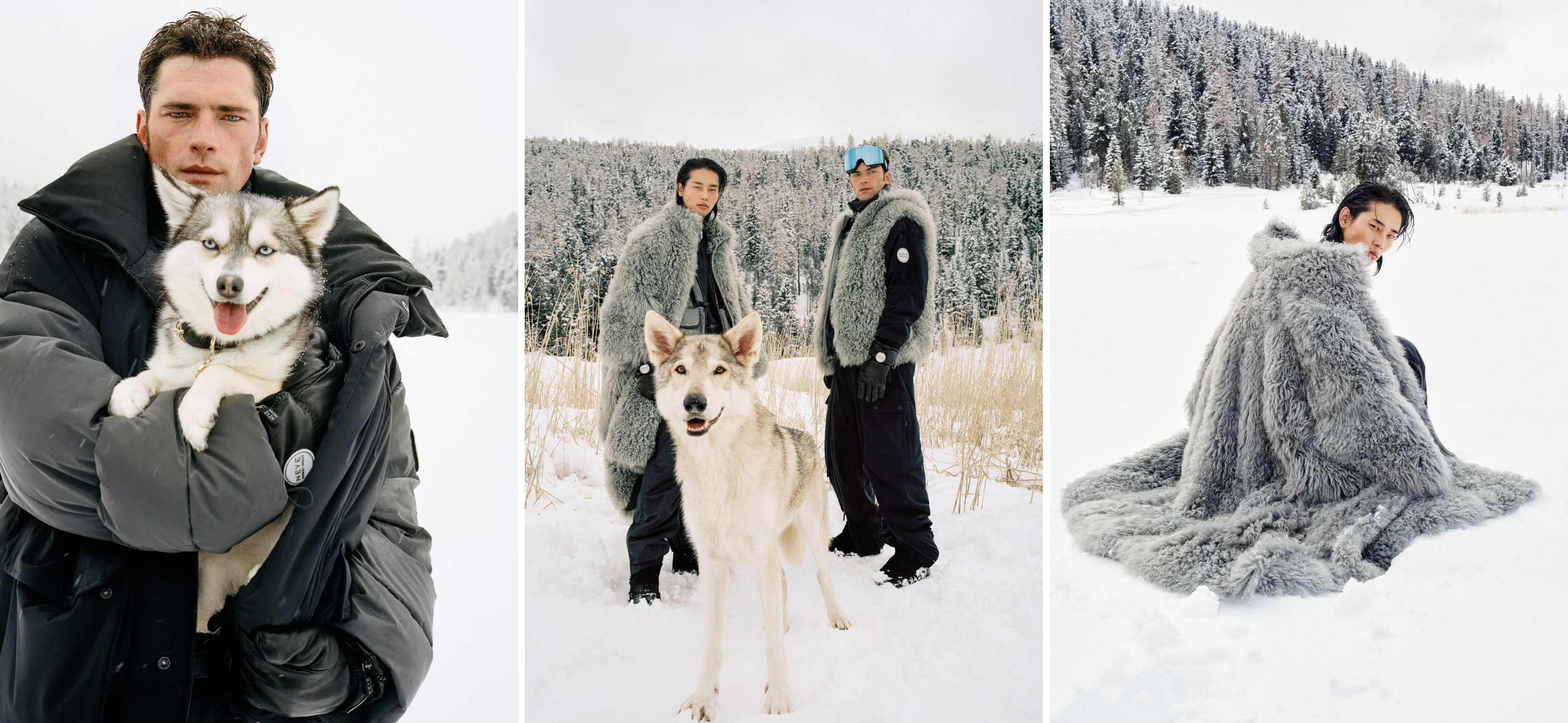 In the new collection, the combination of technical fabrics and enveloping textures such as cashmere and long-haired shearling creates a dialogue between performance and comfort.