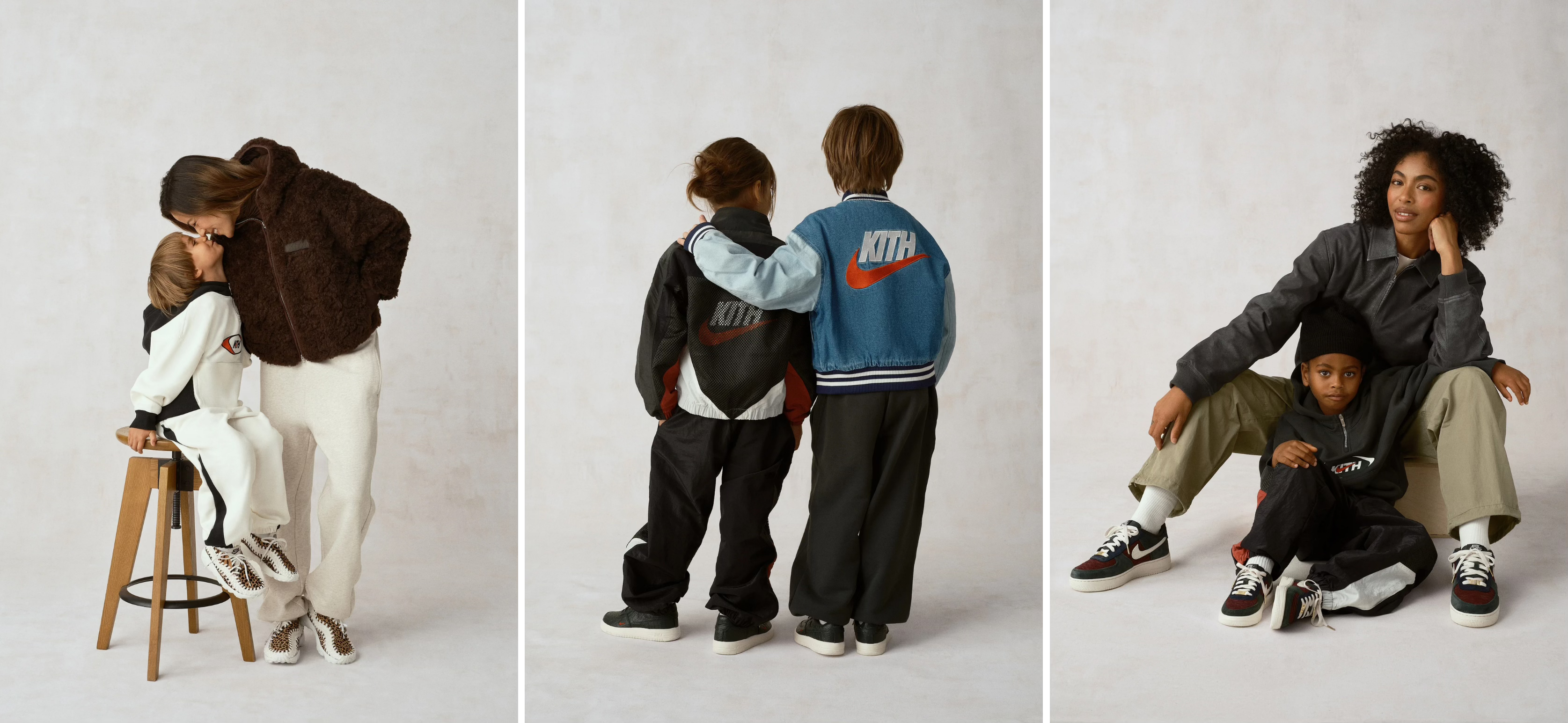 Alongside these sneakers, the collection includes a full apparel offering, featuring coordinated sets, outerwear, and co-branded Kith and Nike Swoosh pieces. Essentially, the language of sneaker hype and collectibility is translated into the children’s segment, speaking both to the kids and their passionate sneakerhead parents.