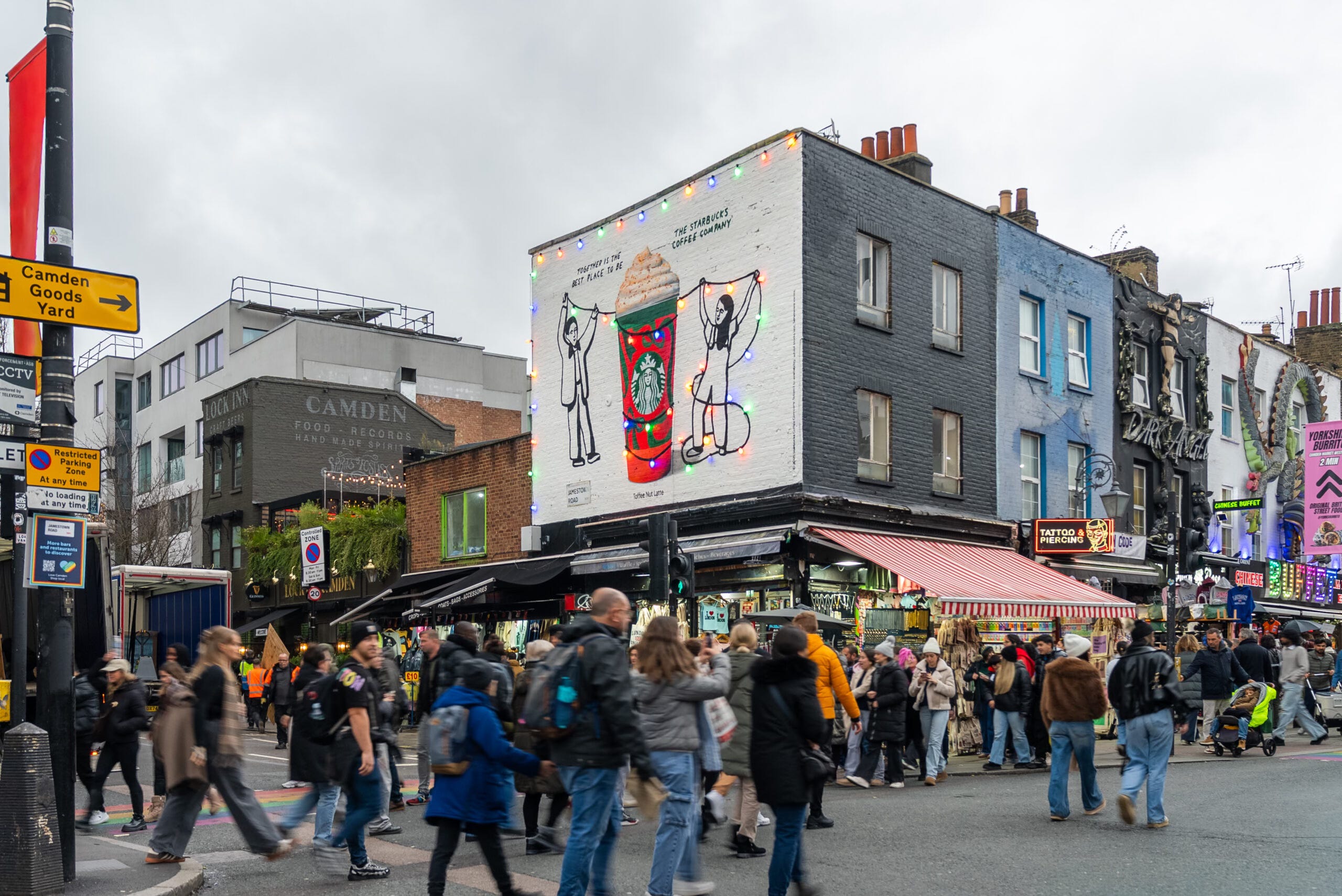 The campaign also brings the drawings to the streets of London and Manchester, with billboards animated by festive holiday lights.