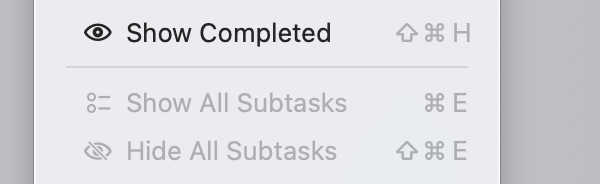 Some menus in Tahoe make both mistakes. E.g. lack of symmetry between Show/Hide and false symmetry between completed/subtasks: